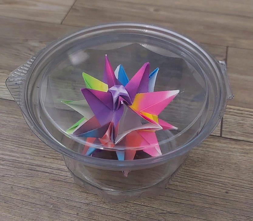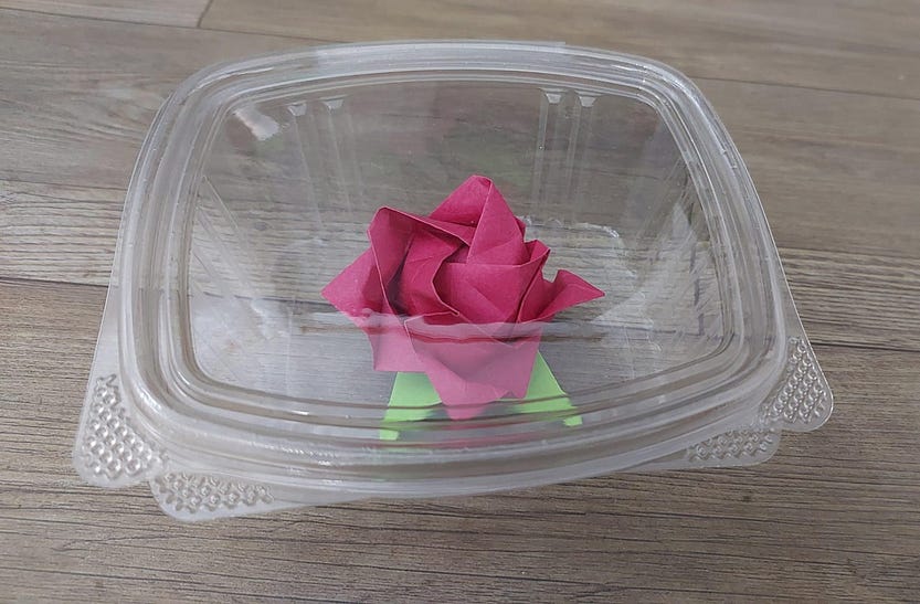 E, por falar em embalagem, as das peças de Origami são sempre aquelas de supermercado, transparentes, que tomo o cuidado de remover as etiquetas, e que protegem muito bem as figuras mais delicadas.